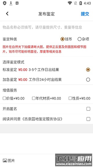 3. 提交鉴定申请,上传钱币相关信息与图片;