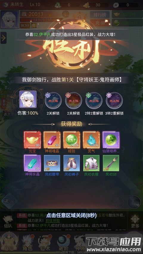 3、及时装备在战斗中获得的武器防具,有效提升角色实力;