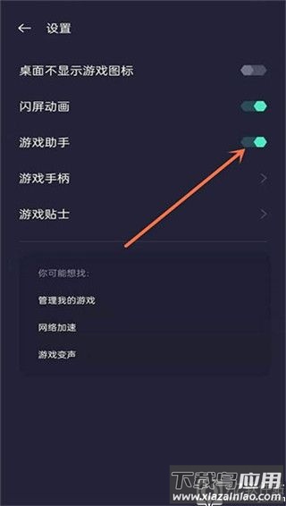 在设置页面内找到游戏助手功能并将其开启;