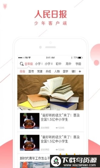 人民日报少年客户端是服务于全国中小学德育教育的辅助平台,隶属于人民日报社。平台目前设有全年级、小学Ⅰ、小学Ⅱ、初中及高中五个学段层级。全年级层级下包含综合、党建、阅读、我拍、我画、我写、研学七个栏目;其余各学段则分别开设国情、养成、人物、国学、健康、自然、安全七个特色栏目,内容具有针对性。