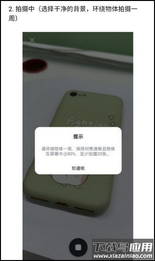 拍摄过程中,建议将物品置于干净单一的背景前,并环绕物体完整拍摄一圈。