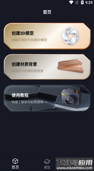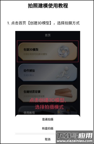 开始创建模型时,需在首页点击“创建模型”并选用拍照模式。