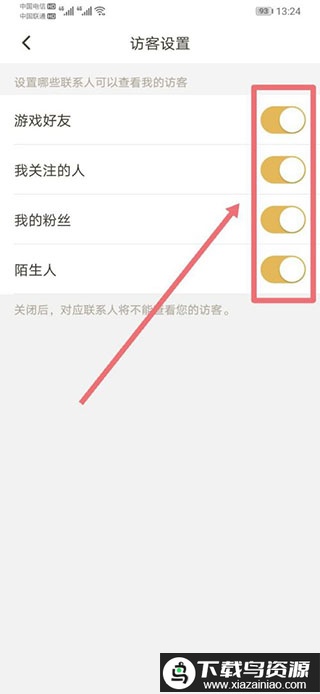 4、在设置中关闭相关选项,即可隐藏自己的访客信息。