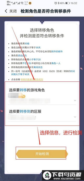 6、确认后系统将检测账号是否符合转移条件;通过检测后,按照指引完成后续操作即可。