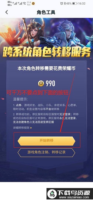 4、点击进入角色工具,选择开始转移按钮;即可发起跨系统角色转移流程。