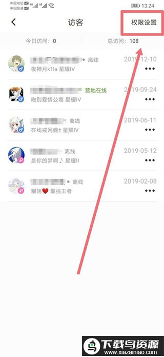 3、访客页面会列出所有访问记录,点击右上角的权限设置。