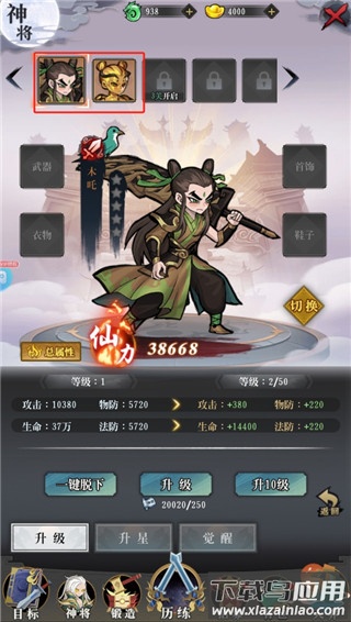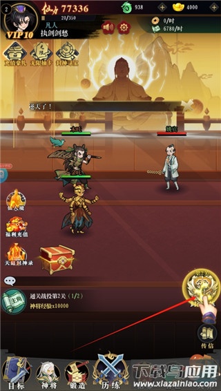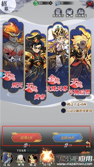 5、在神将界面中,可以编排出战阵容,并通过升级与培养不断提升角色战力;