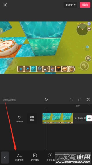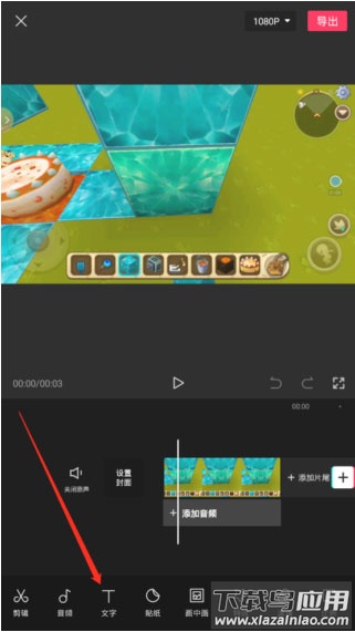 3. 在视频编辑界面下方找到并点击“文字”功能。