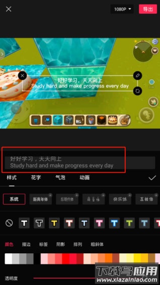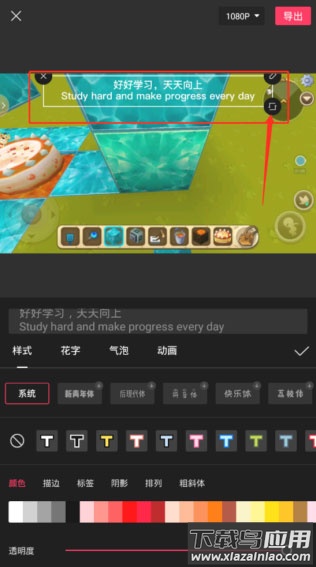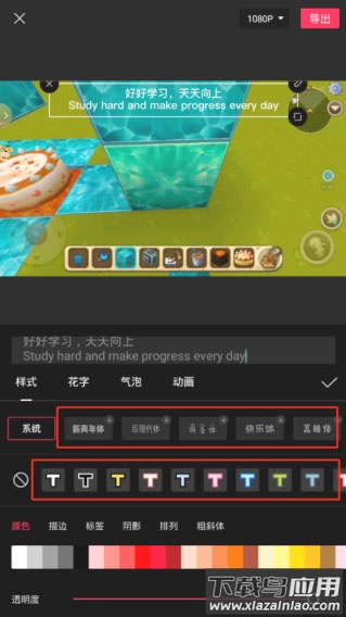 7. 在编辑页面中,可以点击选择喜欢的字体样式并应用,同时设置字幕的颜色等属性。