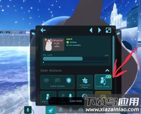 2. 随后会弹出用户信息界面,点击CloneAvatar按钮,系统将提示克隆完成。若按钮为灰色不可用状态,通常需要先添加对方为好友并进行友好沟通。