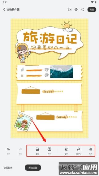 6、通过底部工具栏插入图片、输入文字或使用画笔工具;
