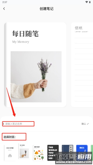 2、填写笔记标题,并挑选喜欢的封面样式;