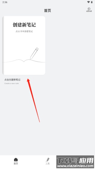 1、下载并打开应用,点击“创建新笔记”开始;