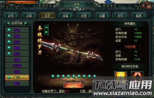 顿悟至紫色品质不仅大幅提升武将三维属性,还会解锁专属武器。紫将魏延的专武名为夺魂修罗刀,其一阶被动“镇远”可对横排敌人造成伤害并驱散其增益效果;二阶被动“武卒”为己方施加癫狂状态,显著提升输出能力。