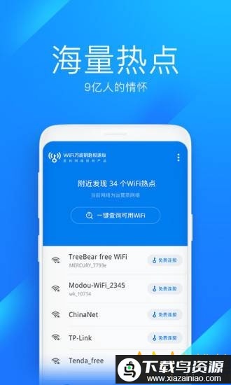 【便捷操作】 一键快速查询,立即发现周边可用免费热点,简单点击即可安全连接;
