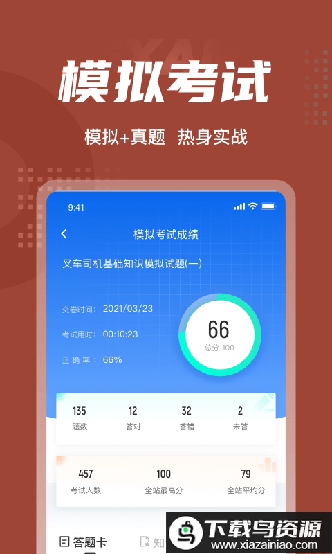 设有模拟考场、历年真题练习、快速练习、考点练习及做题记录等多种模式,以多样化的方式陪伴你备考叉车司机考试。