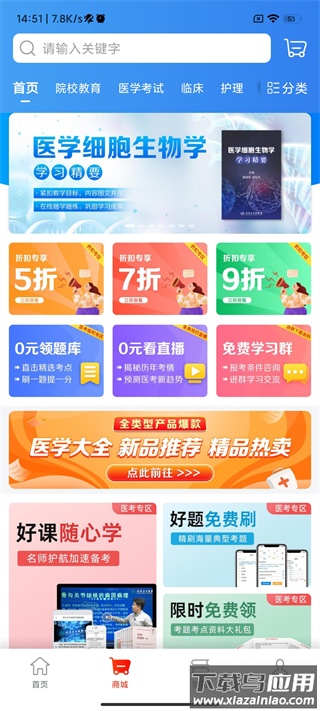 4、切换至商城界面,查看医学书籍与相关课程;