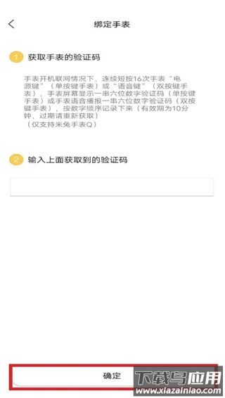根据界面指引核对信息,输入验证内容完成手表绑定。