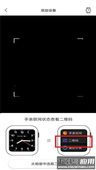 进入添加页面后,按照提示打开手表屏幕显示二维码,使用手机扫描完成登记。