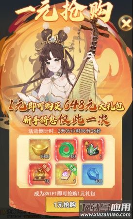 2、一元抢购活动,仅需1元即可获得价值648的礼包,限时一次;