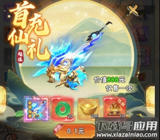 1、首次充值礼包包含极品武器、仙玉与元宝等超值奖励;