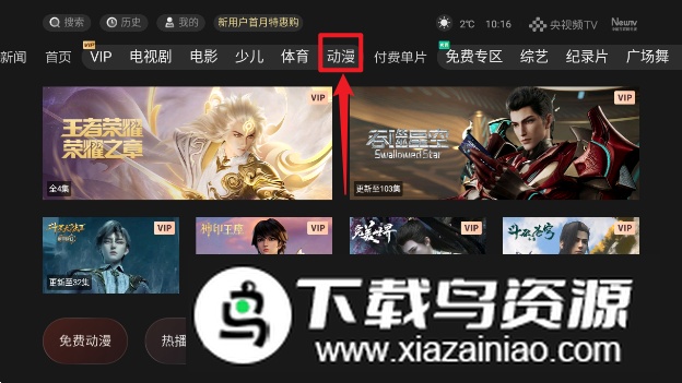 1.首先在首页选择想要观看的内容类型,例如电视剧或动漫等。