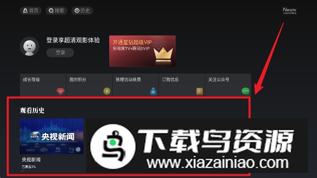 4.在我的页面中可以快速找到最近正在观看的节目记录。