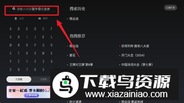 2.在搜索框内输入具体想观看的节目或剧集名称。