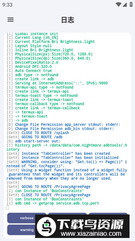 5、实时日志监控:动态显示设备运行日志与ADB交互信息,支持关键词过滤和日志导出,方便开发者调试应用程序或排查系统故障。