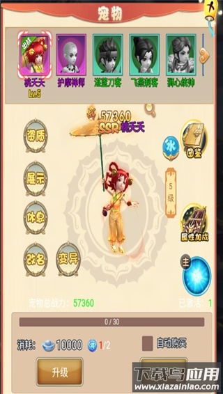 消耗元宝与宠物进阶丹可提升宠物属性值。