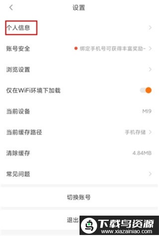 2、在设置页面中选择“个人信息”入口;