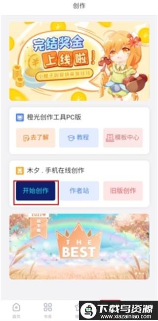 1、在应用内找到创作页面,点击“开始创作”按钮;