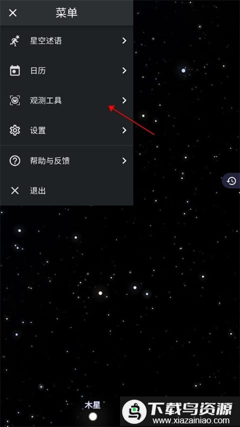 1、在应用主界面找到功能菜单,点击进入观测工具选项。