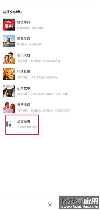 2、选择合适的板块来发布帖子;点击“全部板块”可以浏览并选择更多分类。