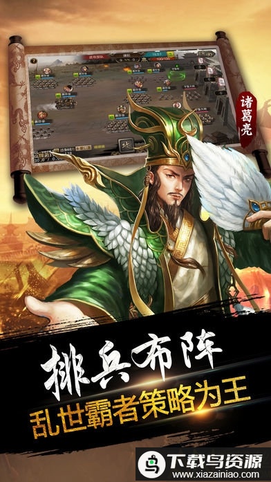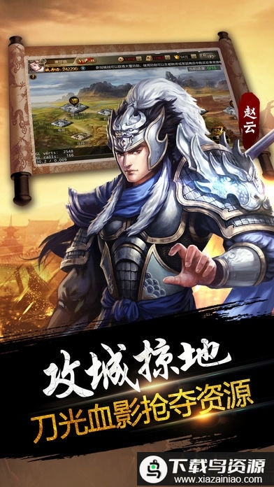 这款年度战争策略手游融合了卡牌养成与国战玩法,背景设定在三国时代;游戏允许玩家全天候参与自由国战,所有城池皆可争夺,你需要发展内政、招募名将、建设封地,从攻城略地开始逐步迈向天下一统,书写属于自己的霸业征程。