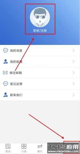1、打开应用进入个人中心,点击上方“登录/注册”选项或头像区域;