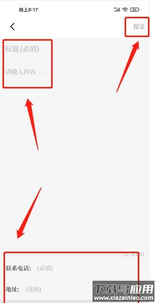 进入报料编辑页,填写报料标题、内容、联系电话、地址,并上传图片或视频,最后点击【提交】。