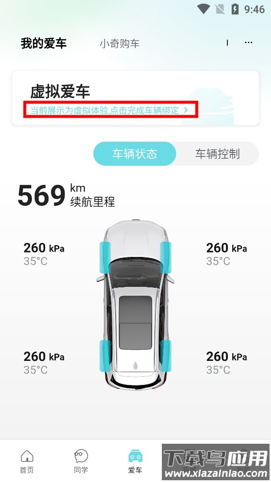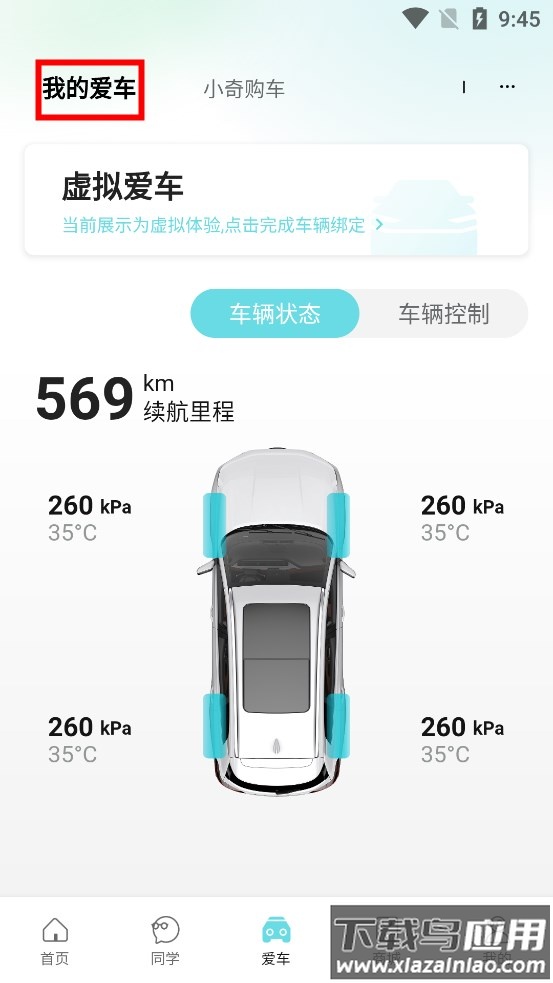 4、进入爱车页面后,点击选择左上角我的爱车;