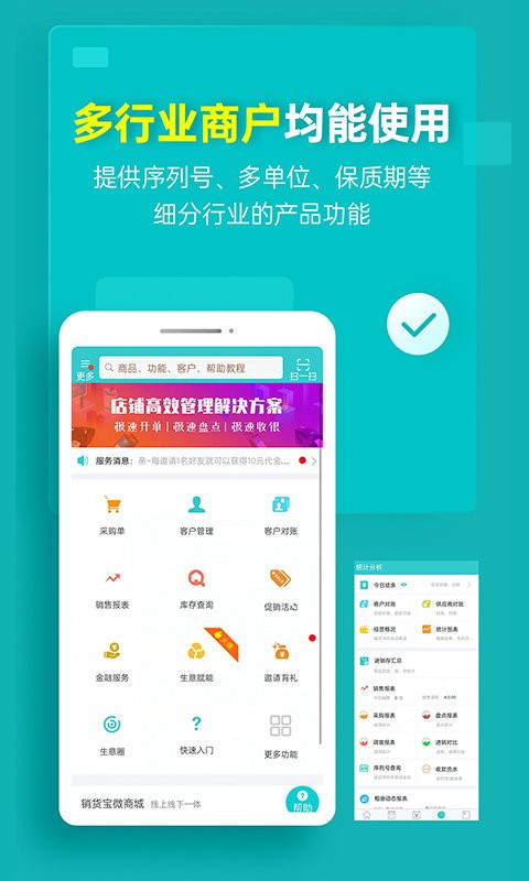该应用已获得全国超过200万商户及600万店员的信赖,成为移动进销存领域的领先者。