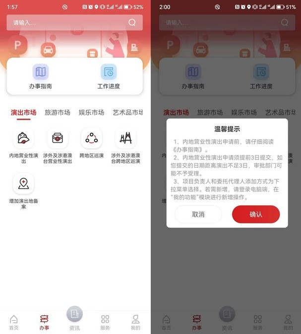 3.设立营业性演出、跨地区巡演等业务办理入口;