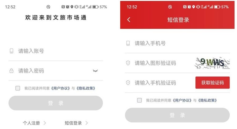 2.移动端提供两种登录方式:账号密码登录与手机验证码登录。如下图
