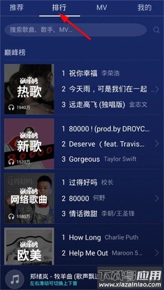 4、进入排行榜页面,可以查看近期热门歌曲趋势,从中发现符合个人口味的音乐。