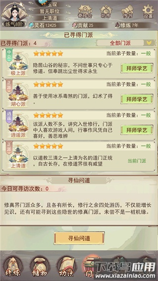 加入门派是游戏成长的核心环节;玩家唯有进入门派,才能在藏经阁中学习功法与法术,从而提升实力。玄功阁用于修习各类功法,玄术阁则专攻法术学习。
