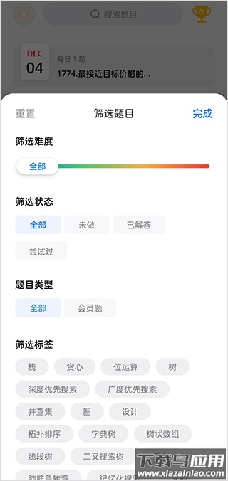 3、按需筛选题目类型;