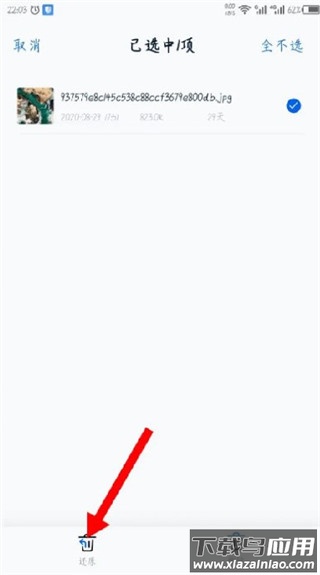 3、在回收站内勾选需要恢复的照片文件;