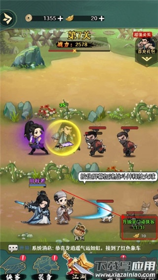 1、游戏以主线推进为核心,侠客会自动进行战斗,你只需点击完成主线任务即可轻松推进;