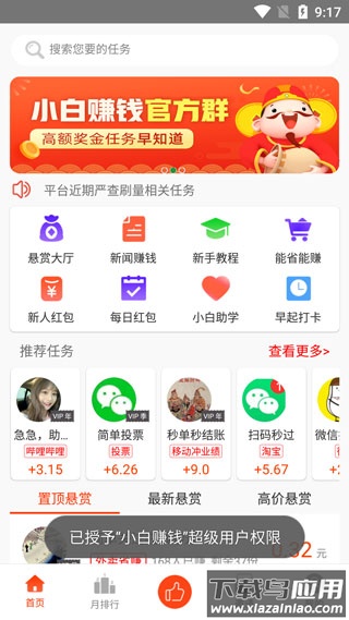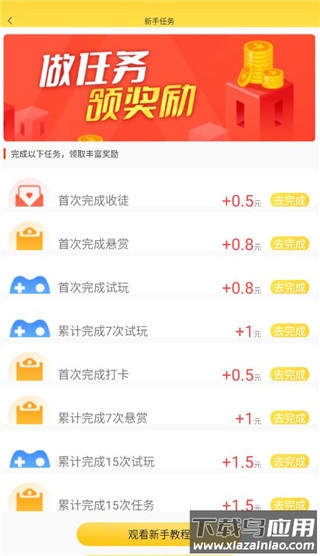2、新手任务专区,完成指定任务即可领取奖励,完成次数增加,红包也会相应增多;