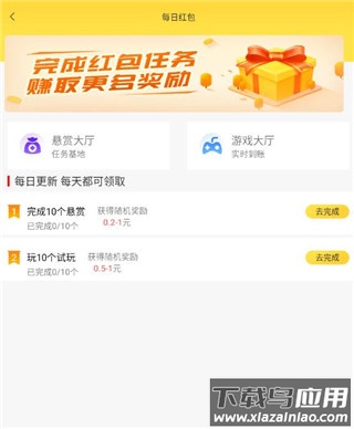 3、每日红包活动,每天完成10个悬赏任务和10个试玩任务即可获得额外红包;