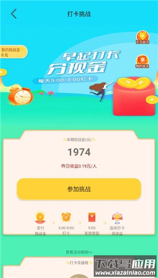 5、每日打卡活动,参与早起挑战可瓜分现金奖励。