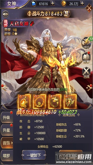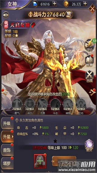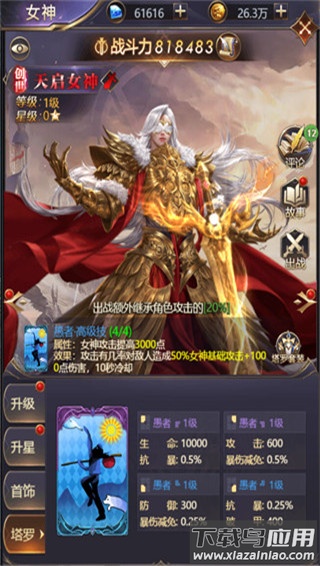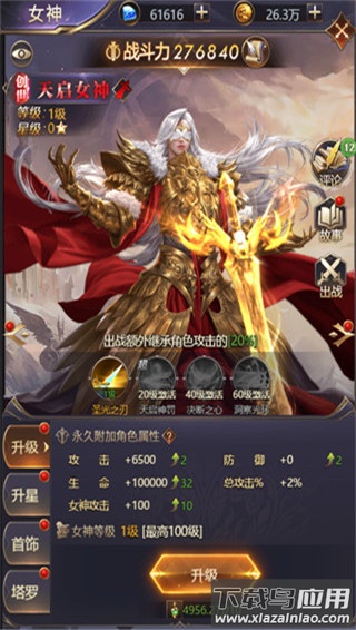 (注意:未上阵的女神升级后同样可为角色附加属性。)